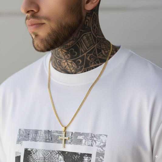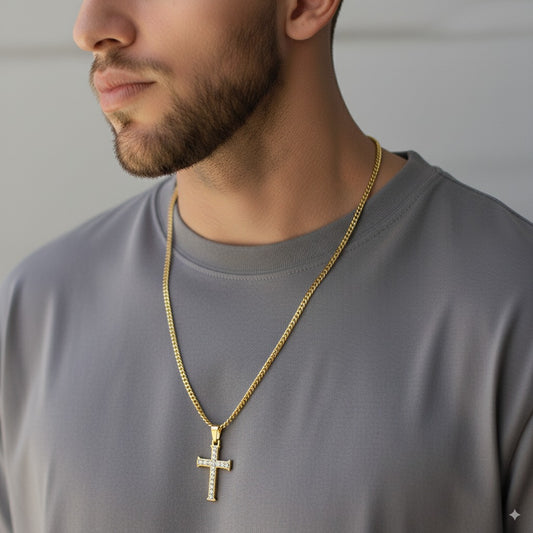 Colar Masculino com Pingente de Cruz – Banho Dourado Premium