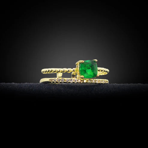 Ousadia e sofisticação em uma única joia. Este Anel Duplo com Esmeralda é a definição de estilo moderno. A deslumbrante esmeralda de corte quadrado se destaca no topo, enquanto os dois aros—um liso e o outro cravejado com micro zircônias—criam um visual único e contemporâneo. É a peça perfeita para quem busca um acessório que combine a força das pedras preciosas com um design inovador.