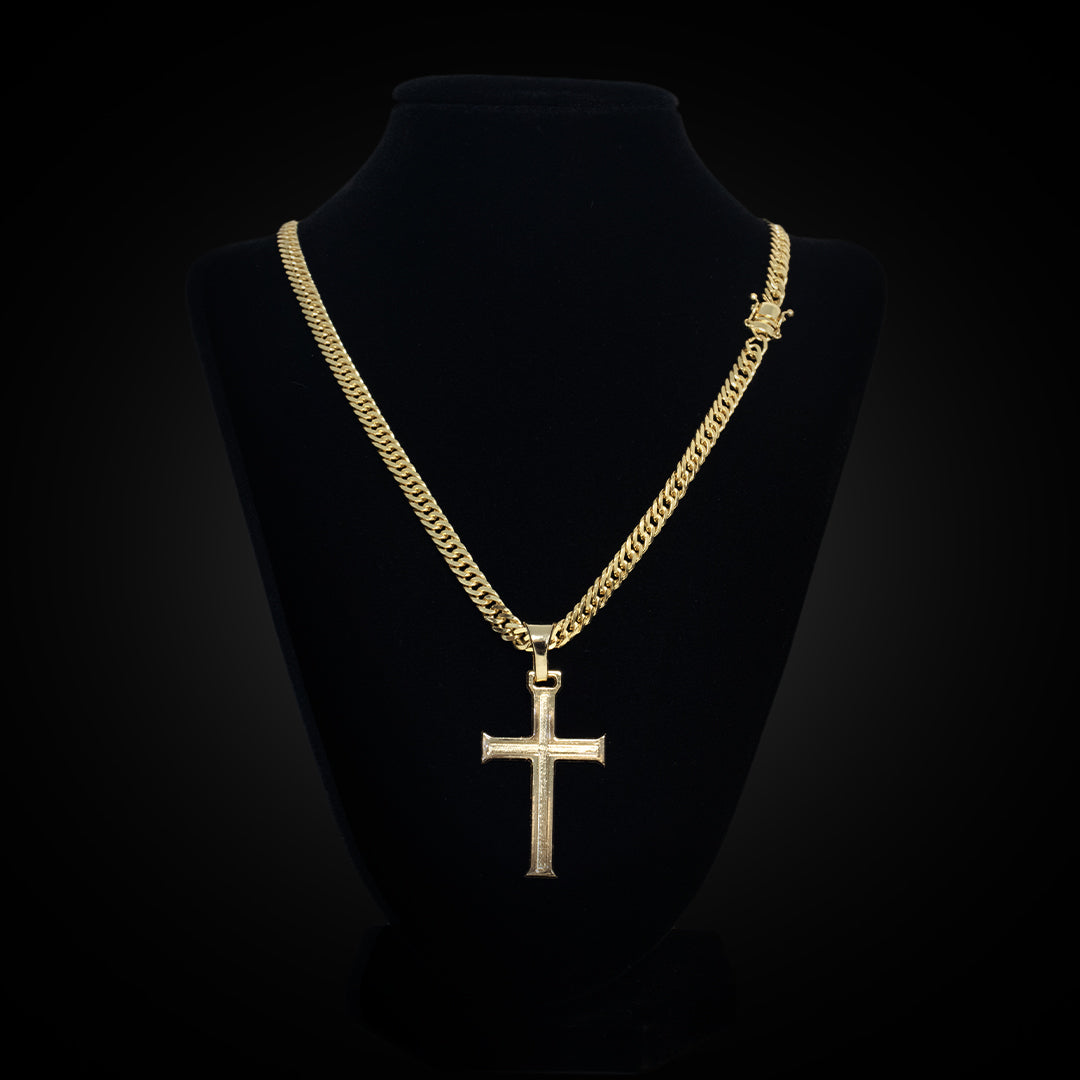 Colar Grumet com Pingente Cruz Grande – Banho Dourado Premium 5mm