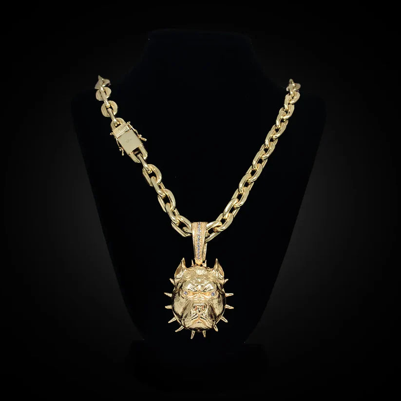 Corrente Cadeado 13mm com Pingente Pitbull de Coleira Spikes