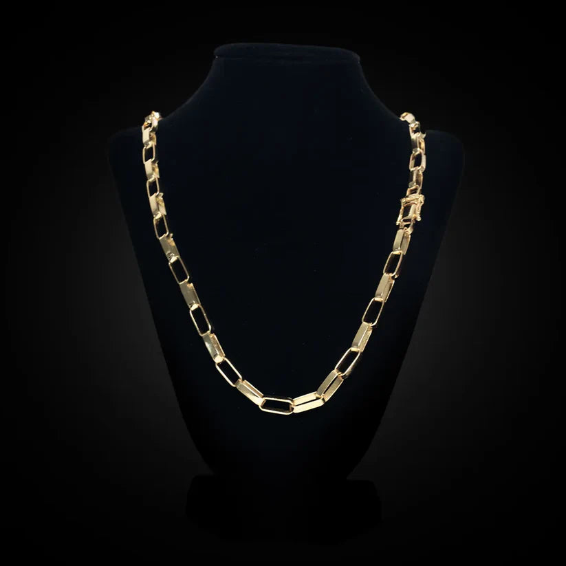 Corrente de Elos Longos Estilo Papier Banhada a Ouro
