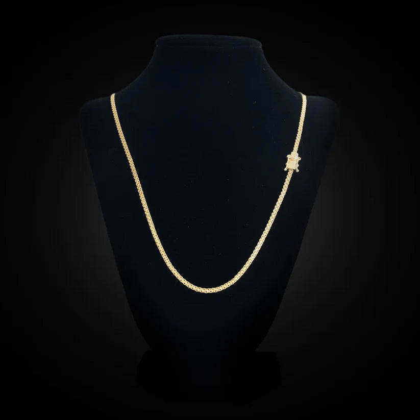 Estilo em dobro, com um toque de modernidade. Esta Corrente Duplo Cadeado de 3mm se destaca pelos seus elos duplos entrelaçados, que criam uma trama robusta e cheia de personalidade. Apesar de sua espessura, a peça é delicada e versátil, perfeita para quem busca um acessório que une elegância, força e um design único.