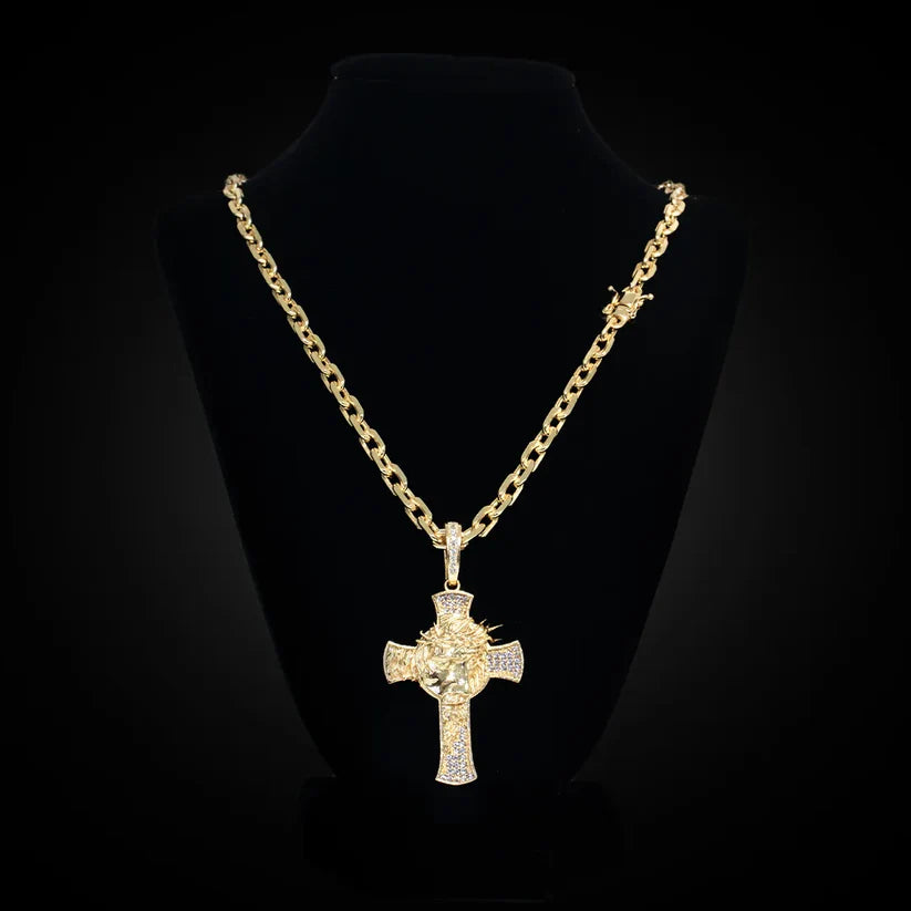Esta joia é uma combinação perfeita de fé e design. A corrente de elos de cadeado é a base perfeita para o pingente de cruz com a imagem de Jesus Cristo. Cada detalhe da peça é trabalhado com precisão e o pingente é cravejado com zircônias brancas, proporcionando um brilho intenso. O acessório ideal para quem busca uma joia com forte significado e um visual poderoso.