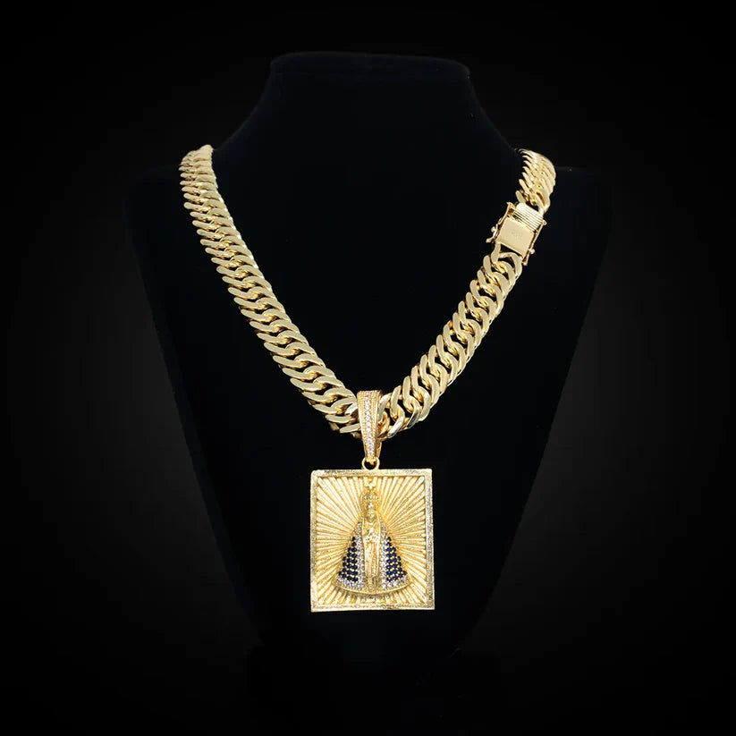 Corrente Grumet (13mm) com Pingente de Nossa Senhora Cravejado