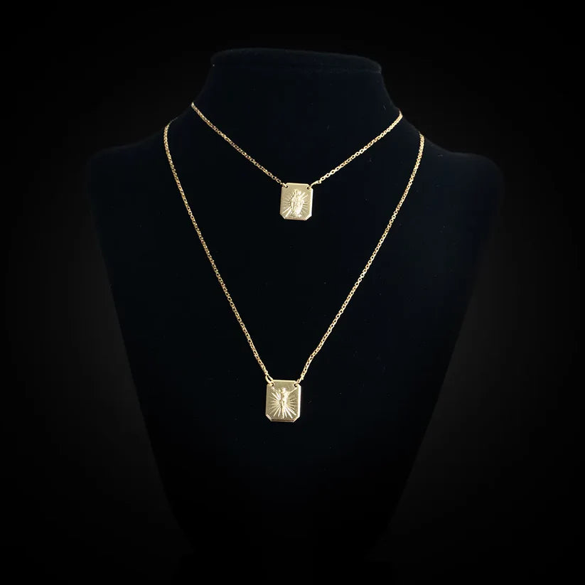Um amuleto de proteção e fé. Nosso Escapulário Clássico apresenta duas medalhas finamente trabalhadas, unidas por uma corrente delicada. Uma medalha traz a imagem do Sagrado Coração de Jesus e a outra a de Nossa Senhora do Carmo, unindo tradição e significado. É uma joia discreta e cheia de simbolismo, perfeita para usar diariamente e carregar sua fé consigo em todos os momentos.